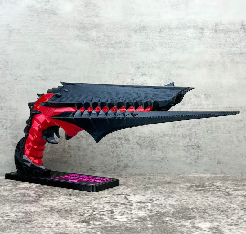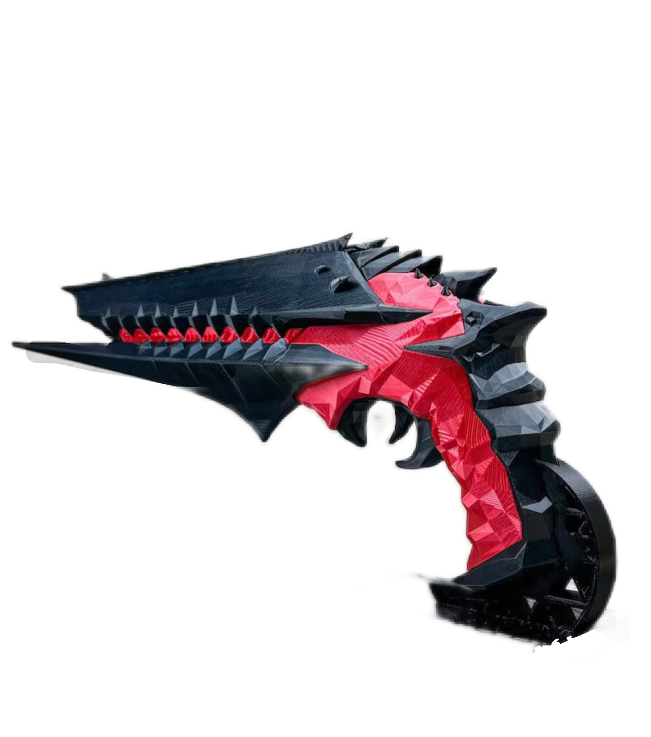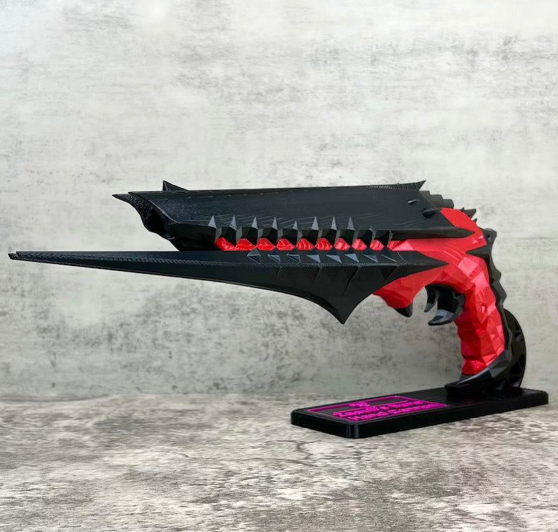 This gun is 3D printed of PLA plastic (human-friendly material), assembled and sanded, hand painted with acrylic paint and varnished with a satin/glossy finish, so the paint could remain as long as possible.
