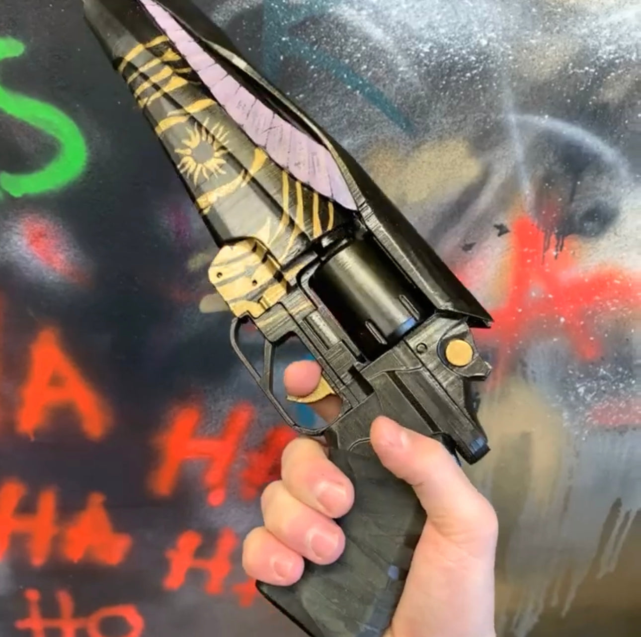 This gun is 3D printed of PLA plastic (human-friendly material) and a metal Frame, assembled and sanded, hand painted with acrylic paint and varnished with a satin/glossy finish, so the paint could remain as long as possible. These Are All Custom Made and Not Cheaply made.