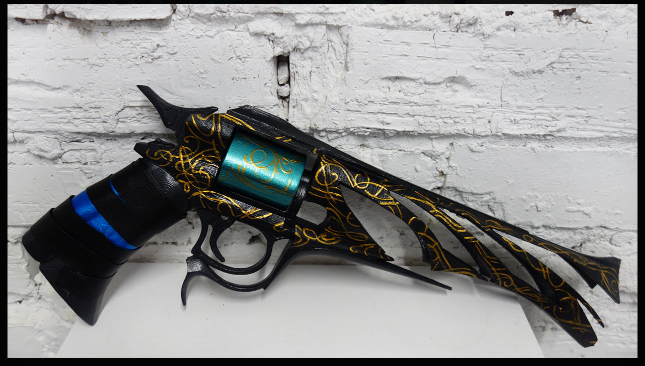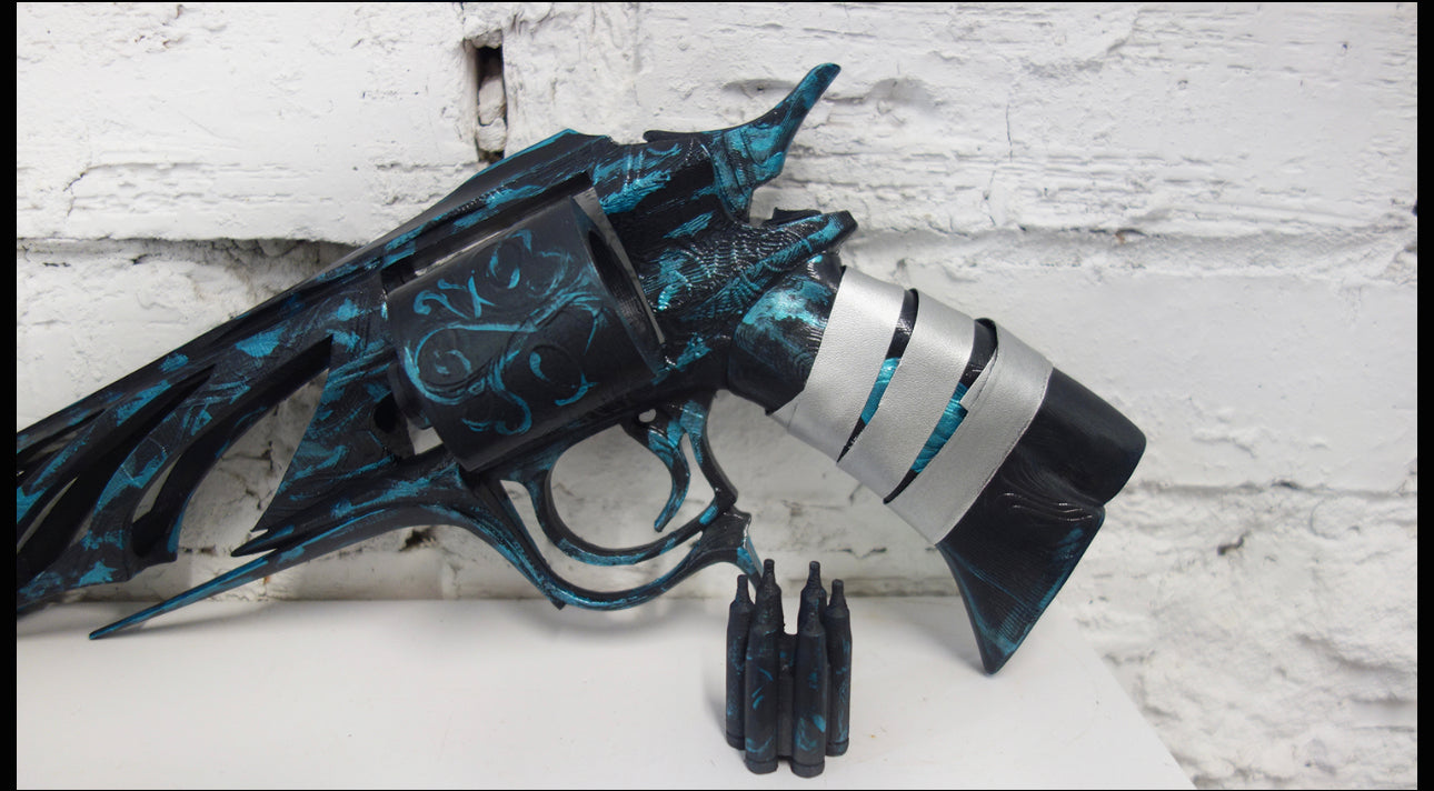 This gun is 3D printed of PLA plastic (human-friendly material) and a metal Frame, assembled and sanded, hand painted with acrylic paint and varnished with a satin/glossy finish, so the paint could remain as long as possible. These Are All Custom Made and Not Cheaply made.
