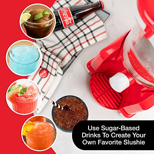 Bring friends and family together while adding thirst quenching fun to any occasion! The Nostalgia SM32RR Retro Classic Slushie Maker features a 32-ounce freezing chamber that can hold plenty of your favorite frozen slushie drinks making it perfect for parties or large gatherings. The easy-flow spout dispenses consistently smooth frozen drinks. The specially designed lid allows you to add ice, salt, and beverages through designated holes to keep the frozen drink machine always full of your favorite drink. Cleaning the slushie machine has never been easier. The tank detaches from the slushie machine base for easy cleanup and includes a detachable cup rest and drip tray. Use your favorite sugar-based drinks or create your own favorite slush.