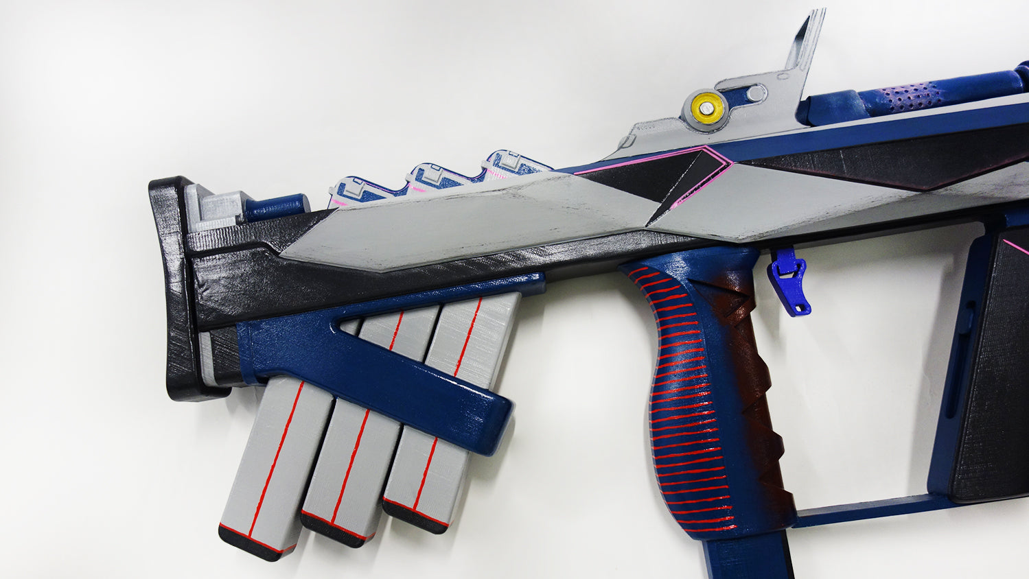 This gun is 3D printed of PLA plastic (human-friendly material) and a metal Frame, assembled and sanded, hand painted with acrylic paint and varnished with a satin/glossy finish, so the paint could remain as long as possible. These Are All Custom Made and Not Cheaply made.